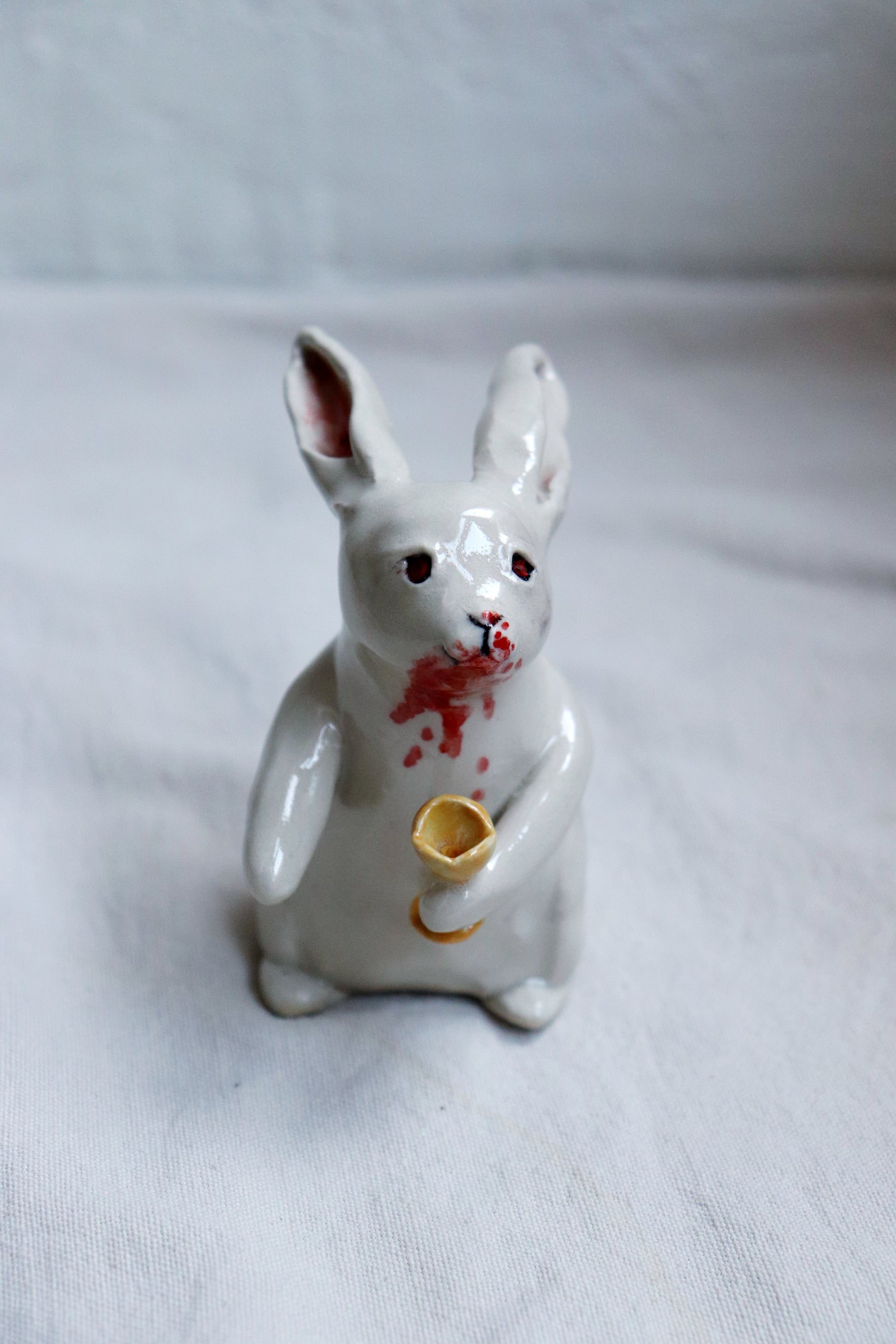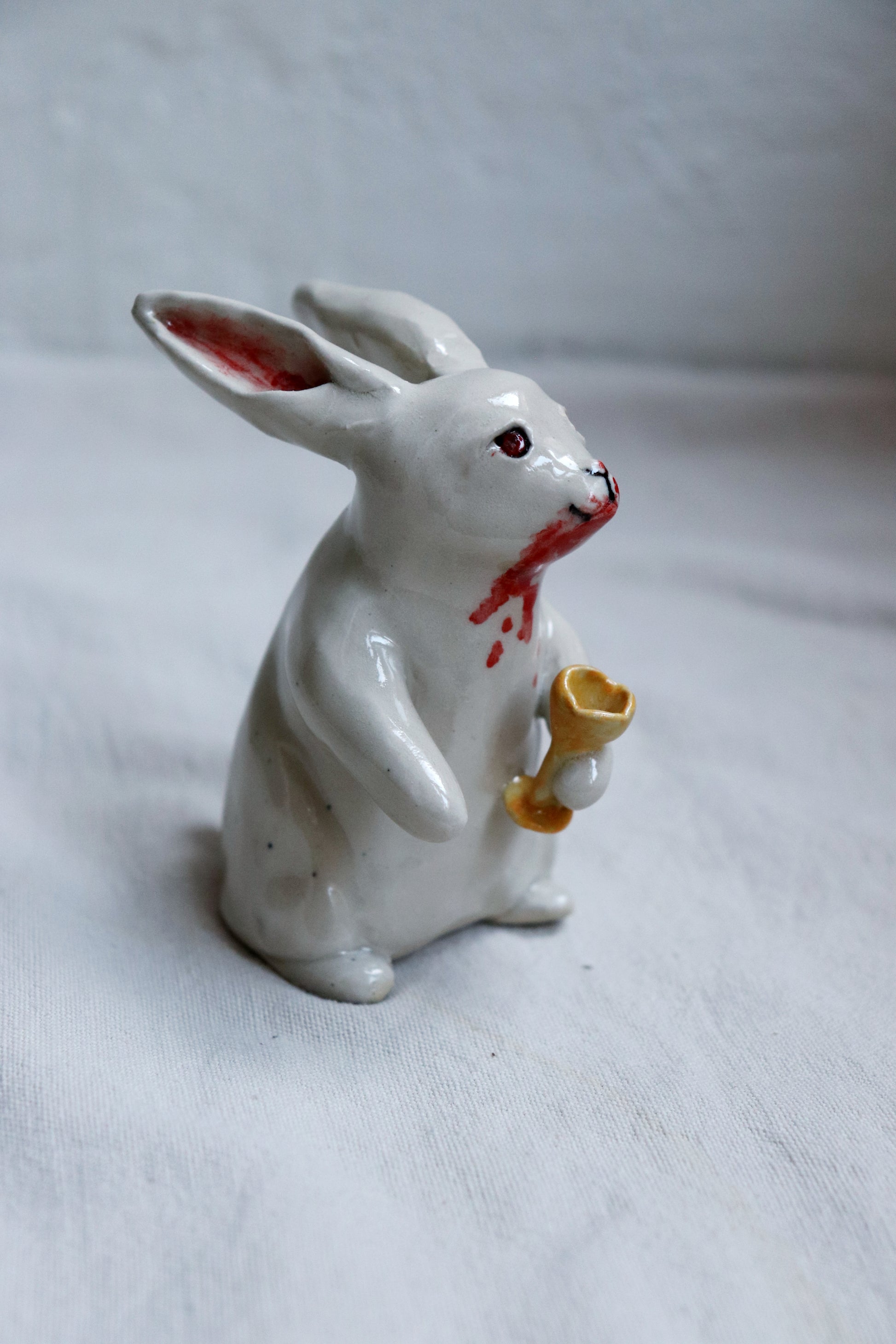 Mycket läskig kanin som klätt ut sig till monstret från Monty Pythons galna värld (Monty Python and the Holy Grail), eller är det faktiskt kaninen från filmen? Den ökända rabbit of Caerbannaog?! Vid en första anblick ser den oskyldig och söt ut, men är egentligen en mördarmaskin. Sotig på ena kinden från sitt liv i grottan bland alla skelett.